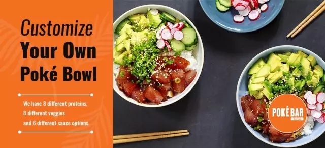 You can customize your poké by choosing different ingredients and base: 可以自选底料和生鱼块,做出适合自己口味的poké。
